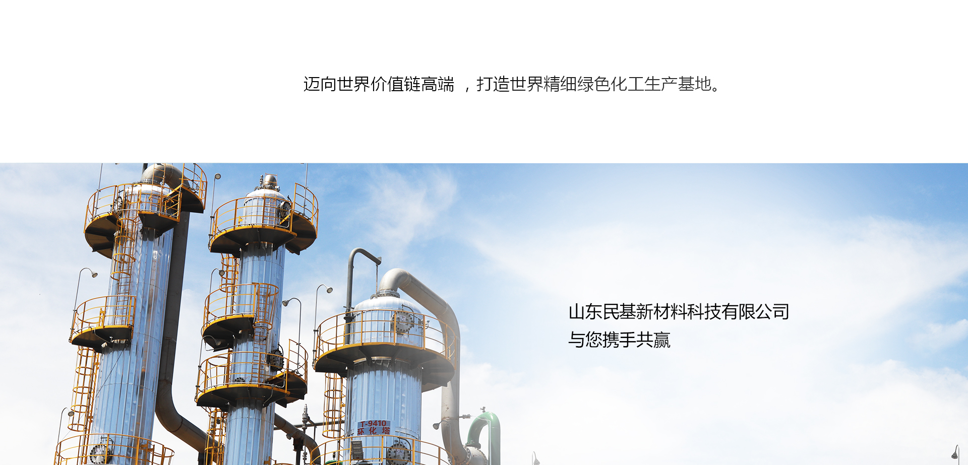 山東民基新材料科技有限公司成立于2008年5月,占地面積20萬平方米,注冊資本1.1億元,是山東省高新技術企業、山東省雙體系標桿企業、山東省氯乙酸行業安全操作規程起草單位、山東省瞪羚企業、山東省“專精特新”中小企業、山東省“中小企業隱形冠軍”,獲山東省“富民興魯勞動獎狀”、“振興淄博勞動獎狀”、“淄博市勞動關系和諧企業”、“淄博市示范誠信企業”等榮譽20余項。擁有省級和市級“一企一技術”研發中心、淄博市工程研究中心,已申報、擁有專利30余項。 公司主要產品:氯乙酸、環氧氯丙烷、三甲基乙酸、三甲基乙酰氯、氯代特戊酰氯、濃硫酸、發煙硫酸、液體二氧化硫等,組成了“氯乙酸—環氧氯丙烷”、“三甲基乙酸—三甲基乙酰氯—氯代特戊酰氯”兩條綠色循環產品鏈,其中氯乙酸單套裝置產能全球第一。產品廣泛用于醫藥、農藥、染料、膠粘劑等行業,深受國內外市場青睞。公司擁有自營出口權,通過了三體系認證,獲頒歐盟3A信用評估證書、國內3A級信用企業證書。 建基筑業十余年,公司始終踐行“創新驅動、高端智能、高質高效、綠色循環”發展理念,集中資源,定向發力,堅守主業,聚焦項目,聚力創新,致力于研發構建“投入-產出-資源循環利用”的安全環保綠色制造體系,打造了新舊動能轉換的“民基樣板”。